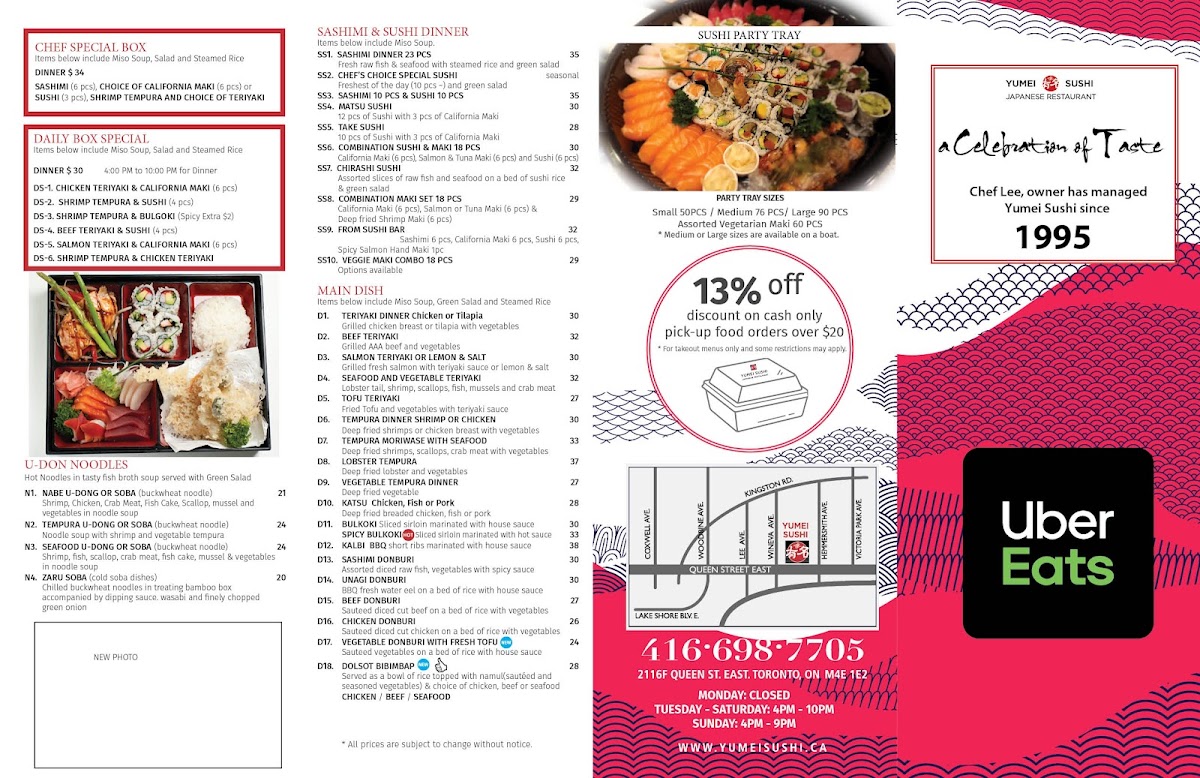 Welcome to Yumei Sushi Japanese Restaurant, located at 2116 Queen Street East in Toronto. This exquisite restaurant offers a wide range of authentic Japanese dishes that are sure to satisfy your cravings. Whether you're a sushi lover or a fan of traditional Japanese cuisine, Yumei Sushi has something for everyone.