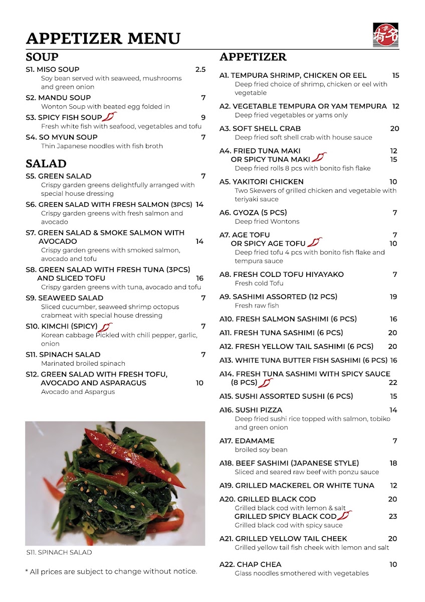 Sorry- we were too hungry to take pics of food! It was excellent. Especially the spicy fish soup- my goodness best thing ever. My husband had the vegetarian dragon roll made with tofu on top and eggplant in the centre and it was very good! I had the salmon dragon making- also excellent! But the spicy fish soup was the highlight I will go back just for that!